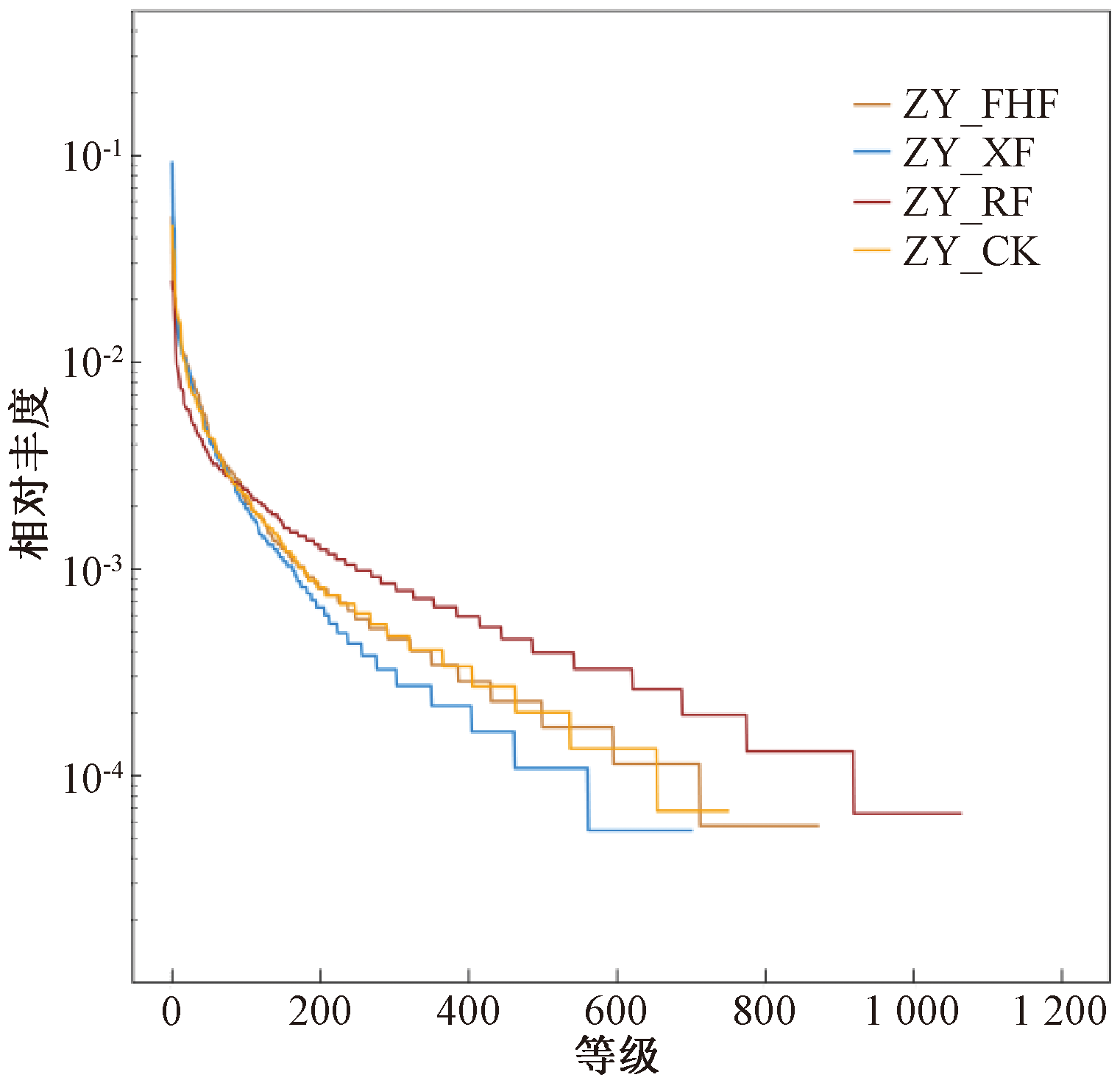 图3 不同施肥处理下茶园土壤细菌群落Rank-Abundance曲线