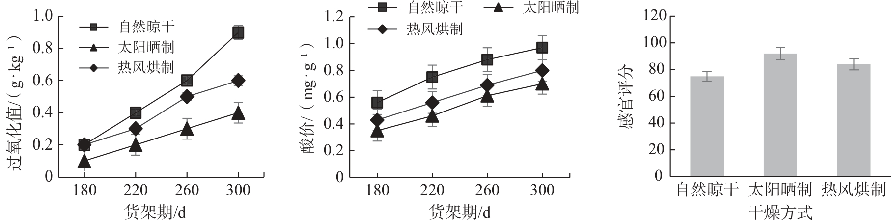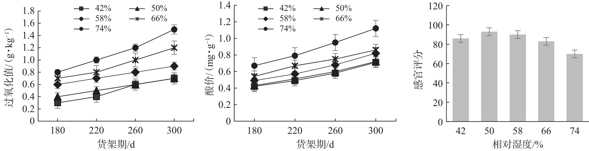 干燥贮存条件对碧根果制品货架期品质的影响