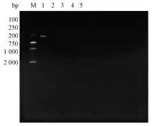 根据病毒DNA提取试剂盒提取疫苗和病毒核酸, 以蒸馏水为空白对照进行PCR扩增。PCR条件为预变性95 ℃ 5 min; 变性95 ℃ 40 s; 退火52 ℃ 40 s、延伸72 ℃ 40 s, 30个循环; 再延伸72 ℃ 10 min。反应结束后, 琼脂糖凝胶电泳观察扩增结果[10, 11]。